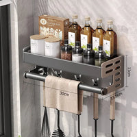 Wall Mount Utensil Holder Multifunctional Spice Organizer Shelf with Hooks Kitchen Hanging Storage Wall Shelf